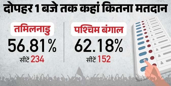 दोपहर 1 बजे तक बंगाल में 62.18% तो तमिलनाडु में 56.81% वोटिंग;