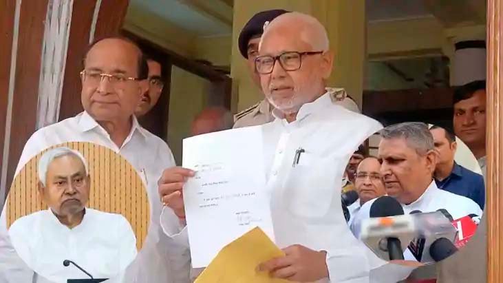 बिहार के मुख्यमंत्री नीतीश कुमार ने सोमवार को बिहार विधान परिषद (एमएलसी) की सदस्यता से इस्तीफा दे दिया। उनका त्यागपत्र विधिवत रूप से विधान परिषद के सभापति को सौंपा जाएगा। सीएम नीतीश के त्याग पत्र को लेकर जदयू नेता संजय गांधी, संजय श्रॉफ और मंत्री विजय चौधरी विधान परिषद पहुंचे हैं। इस दौरान विजय चौधरी ने बड़ा बयान दिया है। बताया जा रहा है कि पहले सभापति के पहुंचने का इंतजार किया जा रहा है। सभापति के पहुंचने के बाद पूरी प्रक्रिया पूरी की जाएगी और मुख्यमंत्री का इस्तीफा स्वीकार किया जाएगा। नीतीश कुमार के इस इस्तीफे के साथ ही संवैधानिक औपचारिकता पूरी हो गई है, क्योंकि वे हाल ही में राज्यसभा के लिए निर्वाचित हुए हैं। नियमों के अनुसार, किसी एक सदन की सदस्यता छोड़ना अनिवार्य होता है। राजनीतिक गलियारों में खबर चल रही है कि सीएम नीतीश आज बिहार के मुख्यमंत्री पद से भी इस्तीफा दे सकते हैं। ऐसे में जब विजय चौधरी से सवाल किया गया कि सीएम नीतीश आज इस्तीफा देंगे तो उन्होंने कहा कि, जरुरी देंगे। उन्होंने कहा कि, जो भी संवैधानिक अनिवार्यता होगी वही मुख्यमंत्री ने सब दिन की है और आगे भी करेंगे। सीएम नीतीश कब तक सीएम बने रहेंगे उसको लेकर विजय चौधरी ने कहा कि यह तो नियम की बात है कानून में जो होगा वैसे ही होगा।