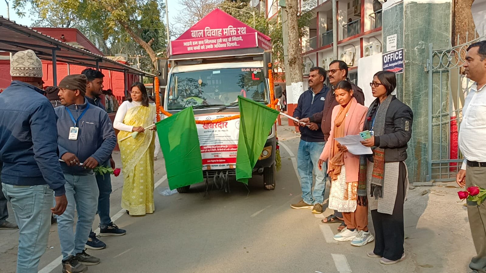 औरंगाबाद: बाल विवाह मुक्त भारत अभियान के सौ दिवसीय कार्यक्रम के तहत आज जिला विधिक सेवा प्राधिकार] औरंगाबाद के तत्वाधान में दीप ज्योति कल्याण संस्थान एवं बचपन बचाओ आंदोलन के सहयोग से बाल विवाह मुक्ति रथ यात्रा को सचिव] जिला विधिक सेवा प्राधिकार] औरंगाबाद द्वारा हरी झंडी दिखाकर रथ को रवाना किया गया। इस अवसर पर सचिव ने बताया कि यह जागरूकता रथ जिले के 11 प्रखण्डों में भ्रमण कर बाल विवाह के दुष्परिणामों] बाल अधिकारों] कानूनी प्रावधानों तथा बाल विवाह की रोकथाम हेतु जन-जागरूकता फैलाएगा।