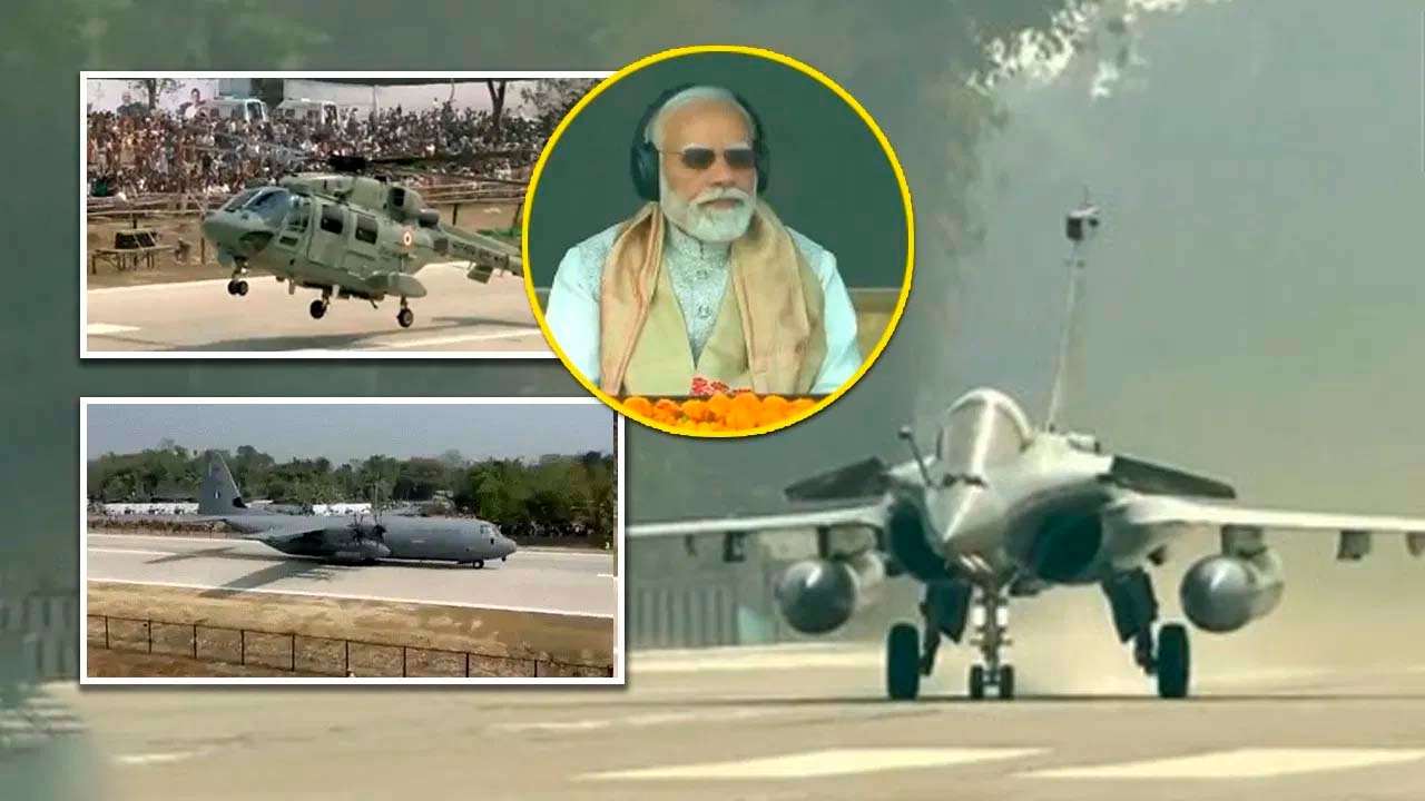 असम के एक दिन के दौरे पर पहुंचे प्रधानमंत्री नरेंद्र मोदी ने आज शनिवार को मोरन में इमरजेंसी लैंडिंग फैसेलिटी (ईएलएफ) का उद्घाटन किया. इसके साथ ही 5,500 करोड़ रुपये से अधिक की परियोजनाओं की शुरुआत करेंगे. प्रधानमंत्री का चाबुवा हवाई क्षेत्र पर असम के राज्यपाल लक्ष्मण प्रसाद आचार्य, मुख्यमंत्री हिमंत विश्व शर्मा ने स्वागत किया. पीएम मोदी भारतीय वायु सेना के सी-130 विमान से डिब्रूगढ़ जिले के मोरान बाईपास पर स्थित ईएलएफ पहुंचे थे. उनका यह विमान पहली बार हाईवे पर ही लैंड हुआ. इसके साथ ही करीब 40 मिनट तक एयर फोर्स का एयर शो भी पीएम मोदी ने देखा. इस दौरान जवानों ने अलग-अलग करतब दिखाए. जिसमें लड़ाकू विमान, परिवहन विमान और हेलीकॉप्टर शामिल थे. पीएम पहले चाबुआ एयरफील्ड पहुंचे, जहां से C-130 में बैठकर मोरन पहुंचे थे. मोरन एयरस्ट्रिप NH-127 के 4.4 किमी लंबे हिस्से पर ELF बनाई गई है. यह भारत की पहली इमरजेंसी लैंडिंग फैसिलिटी है. इसके शुरू होने से सेना और सिविल विमानों को लैंडिंग में मदद मिलेगी. इसी हाईवे पर आज प्रधानमंत्री मोदी जिस विमान में बैठे थे, उसे भी लैंड कराया गया है. इस कार्यक्रम में सबसे पहले एक राफेल और एक सुखोई-30 ने एयर स्ट्रिप पर लैंड किया. इसके बाद वायुसेना के डॉर्नियर विमान ने इसी स्ट्रिप से टेकऑफ किया. बाद में C-130J की लैंडिंग हुई. साथ ही साथ सुखोई और राफेल क्रमवार टेक ऑफ कराया गया. तीन सुखोई लड़ाकू विमान मंच के सामने से फ्लाई-पास्ट करते हुए टच एंड गो ड्रिल किया. इसके बाद तीन राफेल भी इसी तरह की फार्मेशन ड्रिल को अंजाम दिया. भविष्य में संभावित टू-फ्रंट वार की चुनौतियों को देखते हुए भारतीय वायुसेना अपनी तैयारियों को मजबूत कर रही है. देश के अलग-अलग हिस्सों में हाईवे पर इमरजेंसी लैंडिंग फैसिलिटी तैयार की जा रही हैं, ताकि जरूरत पड़ने पर लड़ाकू और ट्रांसपोर्ट विमान वैकल्पिक रनवे का इस्तेमाल कर सकें. यह परियोजना केंद्र सरकार, सड़क परिवहन मंत्रालय और भारतीय वायुसेना के संयुक्त प्रयास से पूरी की गई है. आज आयोजित हो रहा यह कार्यक्रम न सिर्फ पूर्वोत्तर में रणनीतिक मजबूती का संदेश देगा, बल्कि भारत की तेज होती सैन्य तैयारियों का भी प्रदर्शन होगा.