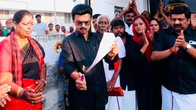 तमिलनाडु के मुख्यमंत्री एमके स्टालिन ने परिसीमन बिल का जोरदार विरोध करते हुए उसकी कॉपी जला दी. उन्होंने केंद्र के इस प्रस्तावित कानून को “काला कानून” बताया. स्टालिन का कहना है कि अगर ये लागू हुआ, तो तमिल लोगों को अपनी ही जमीन पर हाशिये पर धकेल दिया जाएगा. ये तमिल लोगों को उनकी ही धरती पर शरणार्थी बना देगा. एमके स्टालिन ने वीडियो और तस्वीरें सोशल मीडिया प्लेटफॉर्म एक्स पर शेयर की. पढ़ें उन्होंने बीजेपी को लेकर क्या कहा? तब, तमिलनाडु में हिंदी के खिलाफ जो विरोध की आग भड़की थी, उसने दिल्ली तक को झुलसा दिया था. हमारी आग तब ही शांत हुई जब दिल्ली झुकी! आज, मैंने एक और आग जलाई है, उस काले कानून की प्रति जलाकर, जो तमिलों को उनकी ही जमीन पर शरणार्थी बना देता है. ये आग भी पूरे द्रविड़ भूमि में फैलेगी और बीजेपी के घमंड को दबा देगी. तमिल हमारी जन्मदात्री मां है. तमिल हमारी भाषा है और हमारे दिल के अंदर जलने वाली ताकत है. चेन्नई में डीएमके के मुख्यालय ‘अन्ना अरिवालयम’ समेत कई जगहों पर काले झंडे लगाए गए. कमल हासन की पार्टी मक्कल निधि मय्यम और वाइको की एमडीएमके के दफ्तरों पर भी ये झंडे दिखे. द्रमुक के सहयोगी दलों ने शहर के प्रमुख इलाकों में काले झंडे लगाकर विरोध जताया. द्रमुक के दिवंगत वरिष्ठ नेता एम. करुणानिधि के चेन्नई-गोपालपुरम स्थित आवास पर भी काला झंडा देखा गया. चेन्नई में मुख्यमंत्री के आवास और उनके मंत्रिमंडल के सहयोगियों के घरों पर भी काले झंडे लगे दिखे.