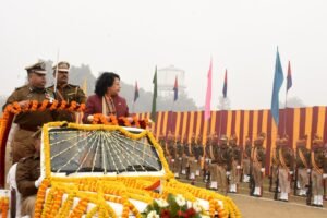 गोरखपुर 27 जनवरी, 2024: महाप्रबन्धक, पूर्वोत्तर रेलवे सुश्री सौम्या माथुर ने 75वें गणतंत्र दिवस के अवसर पर 26 जनवरी, 2024 को सैयद मोदी रेलवे स्टेडियम, गोरखपुर में आयोजित एक समारोह में राष्ट्रीय ध्वज फहराया। उन्होंने रेलवे सुरक्षा बल के जवानों, नागरिक सुरक्षा संगठन, रेलवे स्काउट एवं गाइड के सदस्यों तथा पूर्वोत्तर रेलवे विद्यालय के छात्र-छात्राओं द्वारा प्रस्तुत परेड की सलामी ली।